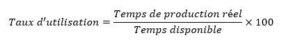 Définition : Le taux d'utilisation mesure l'intensité avec laquelle les équipements de production sont employés par rapport à leur capacité maximale disponible. Il reflète l'adéquation entre le temps pendant lequel l'équipement est effectivement utilisé et le temps total où il est disponible pour la production.