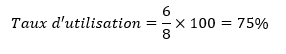 Exemple concret : Lors d'un quart de travail de 8 heures, si une machine est effectivement utilisée pendant 6 heures, le taux d'utilisation est :