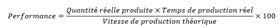 Définition : La performance évalue l'efficacité avec laquelle les équipements produisent par rapport à leur vitesse théorique ou capacité nominale. Elle mesure si la production s'effectue au rythme attendu, sans ralentissements ni interruptions non planifiées.